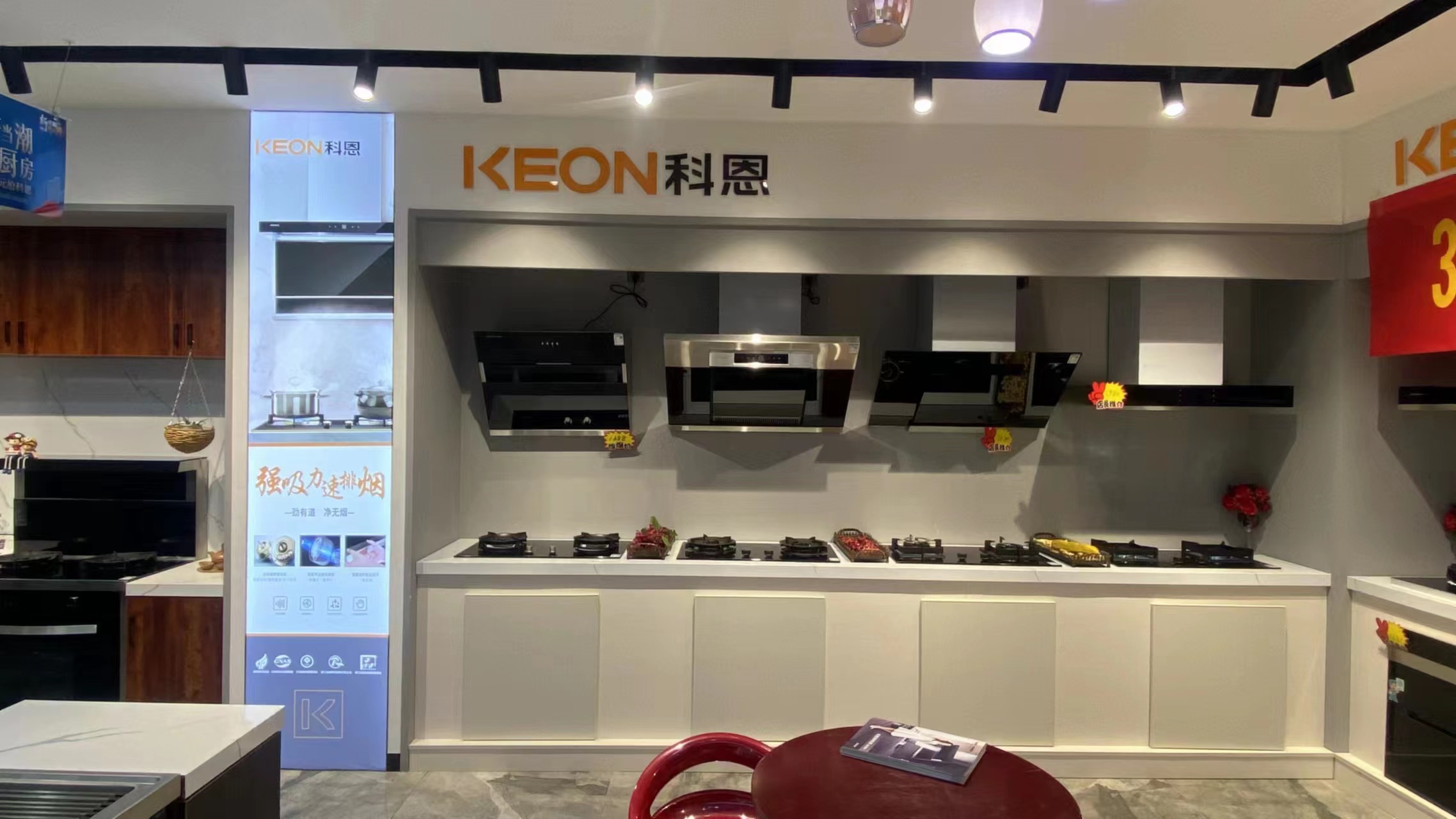 熱烈祝賀科恩集成灶河北蔚縣專賣店隆重開業,國家高新技術企業、專利示范企業、集成灶十大品牌、CNAS認可實驗室、高效凈化環保之星、行業國標起草單位、集成灶團體標準起草單位,科恩集成智慧廚房是一家專業生產高檔吸油煙機、燃氣灶、消毒柜、集成環保灶。