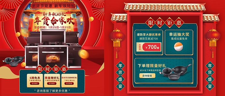 據悉,此次年貨節活動科恩電器推出了各種優惠福利政策。尤其是在科恩京東/天貓旗艦店下單用戶即可享受6期免息,下單即送品牌套鍋,下單立減200、每滿1000減60等優惠政策,同時還能參加幸運抽大獎集成灶贏免單活動。更值得一提的是,在此次年貨節活動中,科恩電器還推出了多款好物供用戶們選擇。