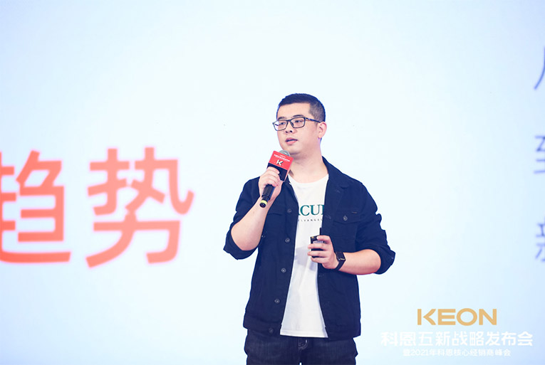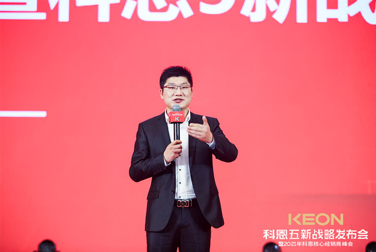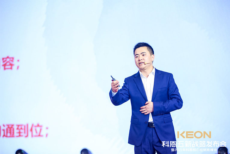 這一切成功的背后,除了有一支優(yōu)秀的鐵血團隊,還有各地經(jīng)銷商家人的支持陪伴,更重要的是有一位領(lǐng)航人不斷地探索。科恩電器董事長俞鋒上臺致辭,宣布峰會正式開始,“打造新科恩、重塑新科恩,再創(chuàng)科恩黃金十年”這一堅定目標(biāo)和信念,伴隨洪亮的嗓音響徹全場。