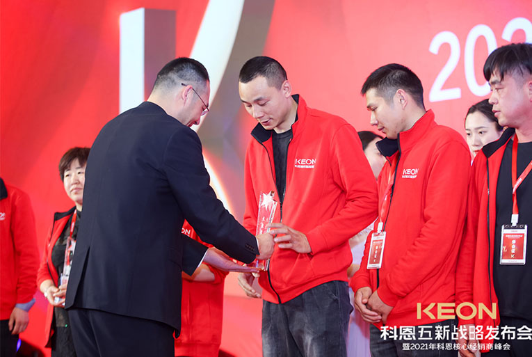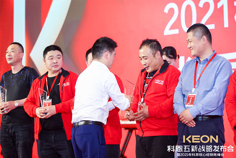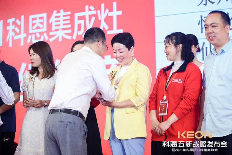 科恩電器一路披荊斬棘,成功實現(xiàn)了一輪又一輪銷量的突破,這一切的成果都離不開終端經(jīng)銷商的努力與付出。晚宴現(xiàn)場對科恩電器優(yōu)秀經(jīng)銷商進行了表彰獎勵,頒發(fā)了2020年度科恩電器優(yōu)秀專賣店、2020年度科恩電器優(yōu)秀經(jīng)銷商、2020年度科恩電器杰出經(jīng)銷商、2020年度科恩電器卓越經(jīng)銷商、2020年度科恩電器功勛經(jīng)銷商等在內(nèi)的多項大獎,公司高管上臺授予榮譽。