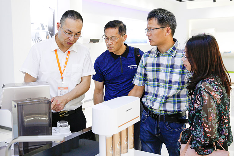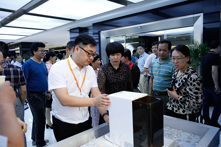 交流會(huì)上,董事長(zhǎng)俞鋒講述其科恩電器十余年的發(fā)展征程, 磨礪出尖峰,科恩快速被市場(chǎng)廣泛接納、被消費(fèi)者所認(rèn)可,良好的品牌形象和知名度、獨(dú)特的產(chǎn)品品質(zhì)、合理的價(jià)格和服務(wù)讓科恩電器漸漸走向高端。隨后,俞董事長(zhǎng)重點(diǎn)介紹并演示了科恩為響應(yīng)“綠色家電”消費(fèi),重點(diǎn)研發(fā)的環(huán)?!昂诳萍肌薄?strong>科恩移動(dòng)水吧。健康飲水倡導(dǎo)者,全品類廚電質(zhì)造專家科恩電器憑借移動(dòng)水吧榮獲“工業(yè)設(shè)計(jì)大賽產(chǎn)品設(shè)計(jì)優(yōu)秀獎(jiǎng)”,這一殊榮充分展現(xiàn)了科恩電器的工業(yè)設(shè)計(jì)實(shí)力,也是行業(yè)對(duì)科恩電器在工業(yè)設(shè)計(jì)領(lǐng)域成績(jī)的充分認(rèn)可。