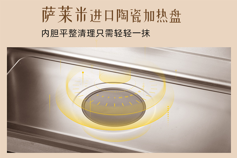 另外,集成灶十大品牌、廚電行業(yè)十大品牌科恩ZK01蒸烤一體機采用無縫焊接工藝內(nèi)膽,洗凈不費勁,百刮不花,無縫隙一抹即凈,底部采用進口“薩萊米”陶瓷加熱盤,內(nèi)膽平整只需輕輕一抹就能潔凈。