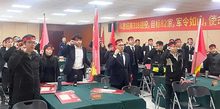 總指揮錢昌敏帶領公司各領導、各戰區作動員講話,并制定了本次招商峰會的戰略方向和執行策略,提出作戰目標,希望每位科恩人能夠以百分百的狀態投入工作,以堅持不懈的精神砥礪前行。科恩集成灶在全國擁有近3000家專賣店,相信在大家的不懈奮斗下,將全力沖刺2022!
