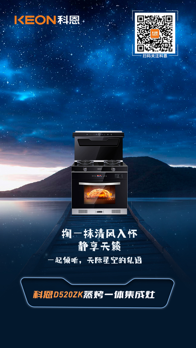 征程廚房星際云端,科恩D520ZK蒸烤一體集成灶,只為你而來