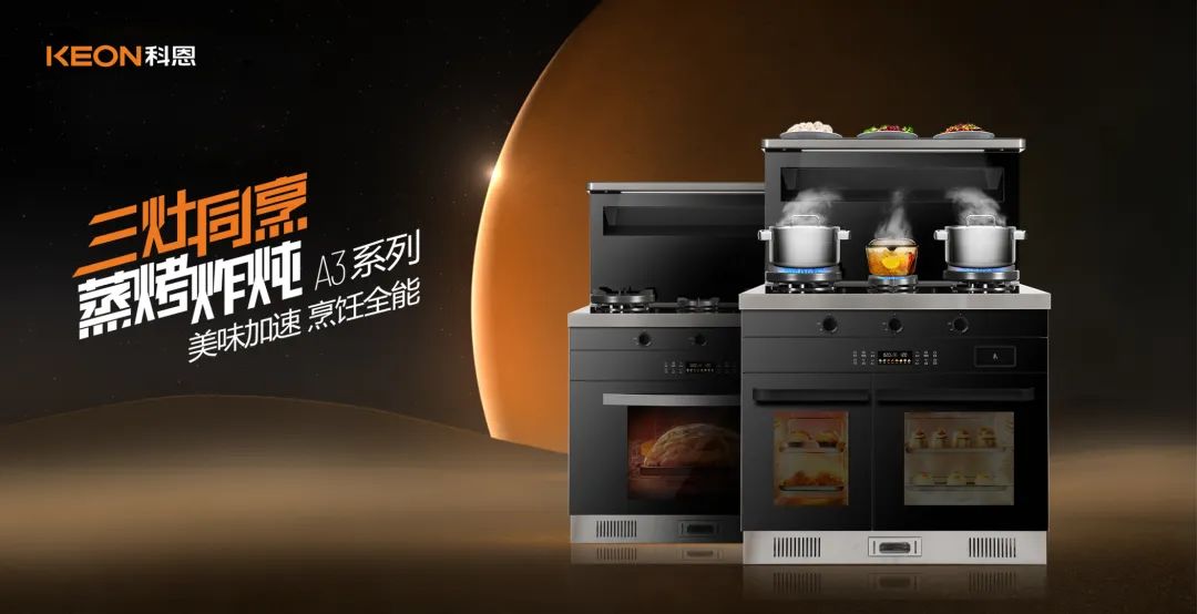 配合現(xiàn)代人快節(jié)奏生活,科恩研發(fā)了A3系列集成灶,不僅可以做到三灶同烹,還能同時蒸烤,15分鐘一桌美食,不再是愿望。
