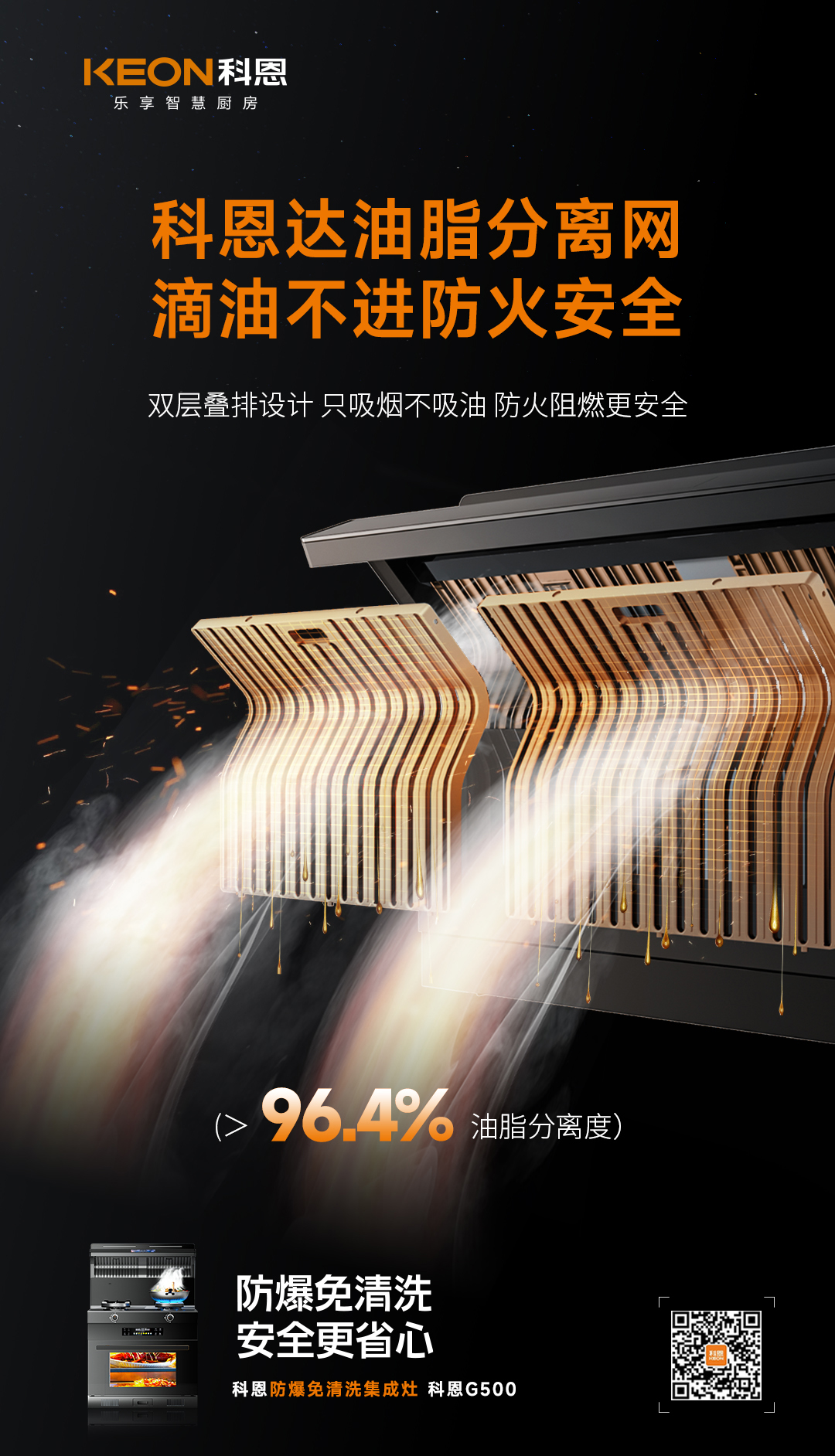 怎么樣的集成灶才能更完美匹配用戶的需求。2023年,科恩研發(fā)了G系列防爆免清洗集成灶,6K省心超體驗,完美適配消費者需求!