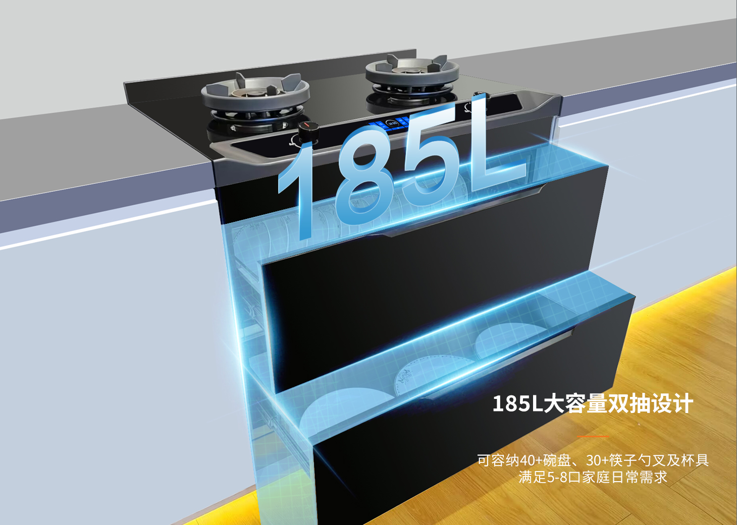 全域消殺,健康護(hù)航。避免餐具二次污染,呵護(hù)全家人健康安全。科恩集成烹飪中心,185L大容量消毒艙體,紫外線+臭氧+紅外三重消殺。奶瓶餐具統(tǒng)統(tǒng)立體滅菌,二星級(jí)認(rèn)證看得見的安全!