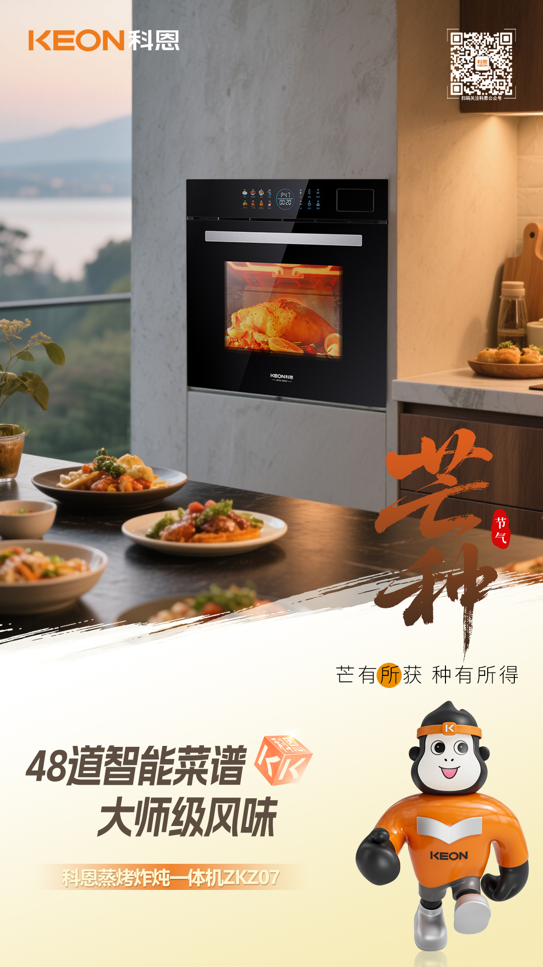 仲夏蟬鳴起,新麥入倉時芒種麥香濃,廚房煥新章科恩匠心推出ZKZ07蒸烤炸燉一體機,用科技重新定義烹飪藝術,讓每一道菜都成為時令佳作,為家人帶來舌尖上的驚喜!