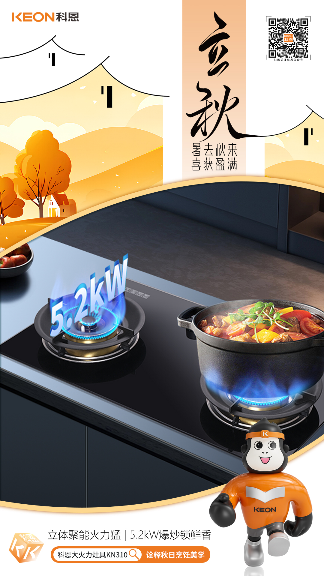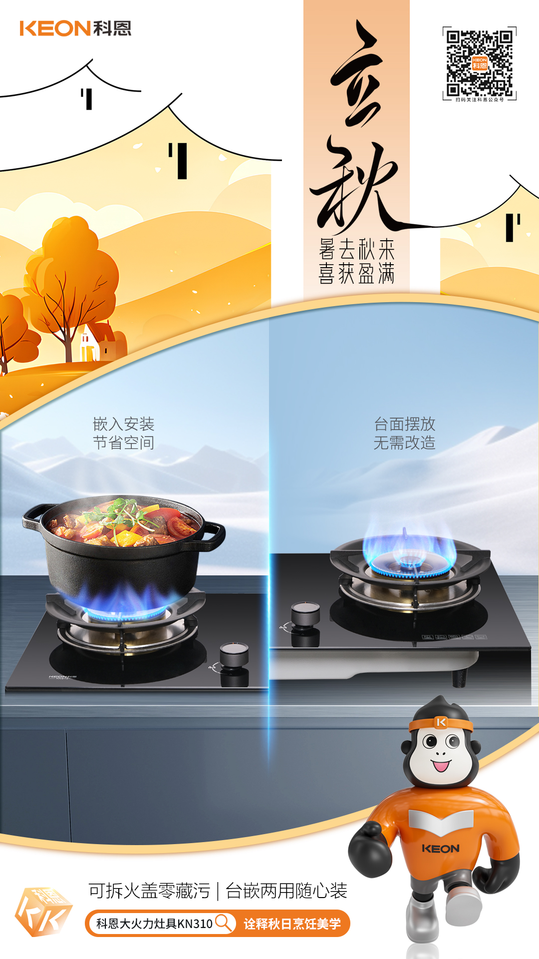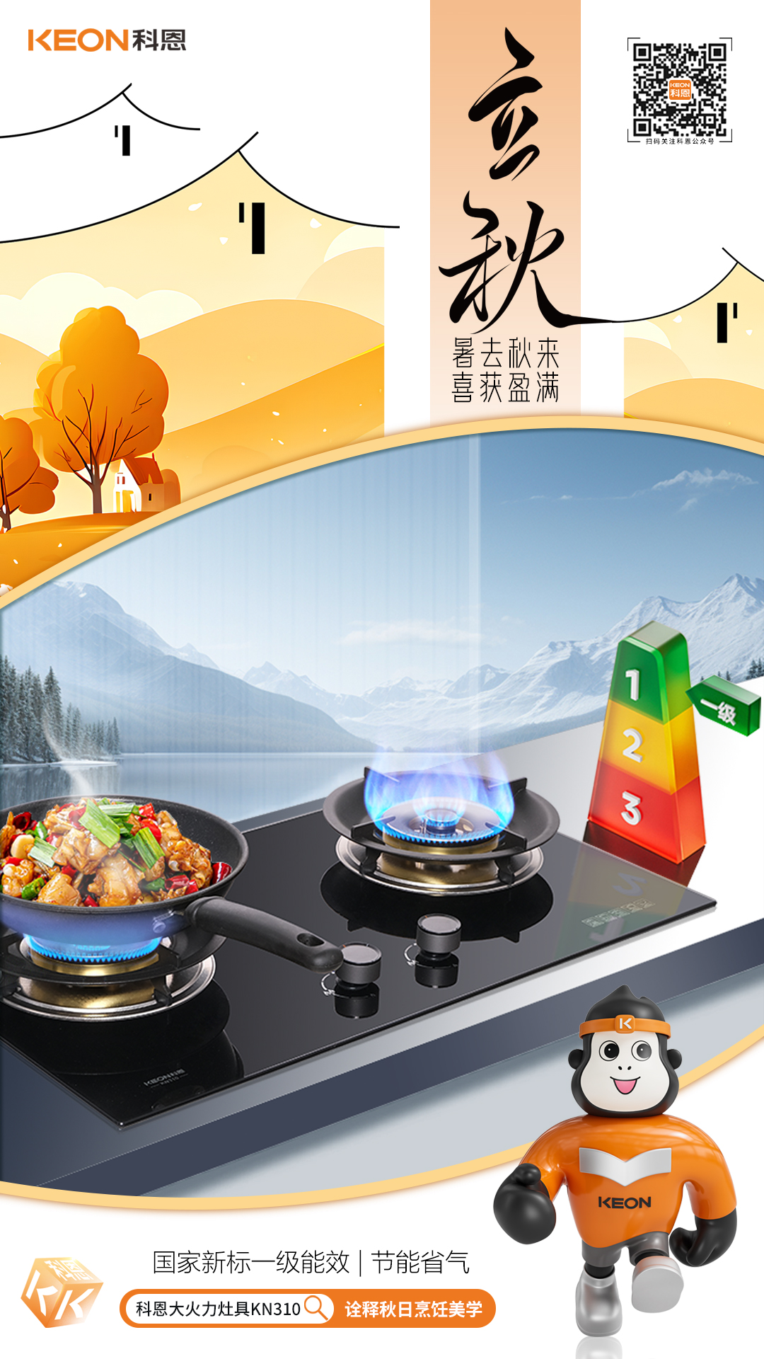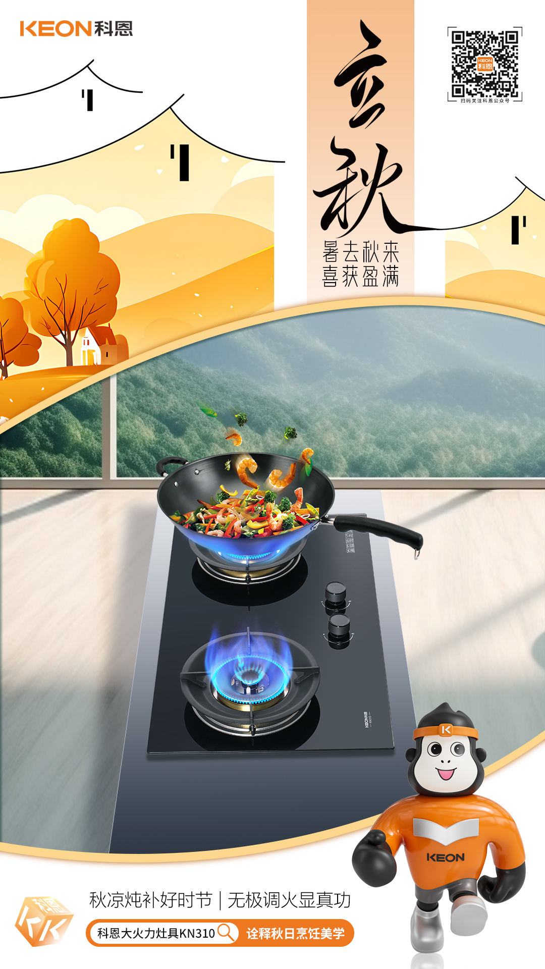 立秋煙火起,灶上煥新時??贫鹘承耐瞥雒突鹪罹?/span>KN310,以“火候藝術”重塑廚房烹飪美學,讓每一味秋鮮都恰到好處,鎖住時節的醇厚與溫情,立秋貼秋膘,灶具煥新正當時!