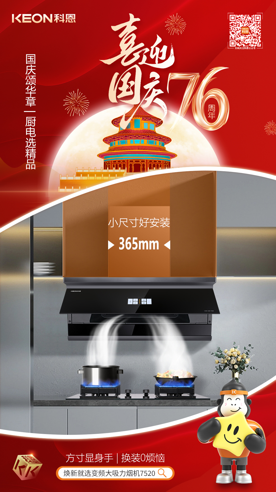 盛世華誕,家國同慶??贫鲾y品質廚電,以科技賦能團圓時刻,重塑廚房呼吸美學。讓爆炒油煙遁于無形,讓家宴烹飪既高效又安心,守護每個家庭的假日煙火溫情。