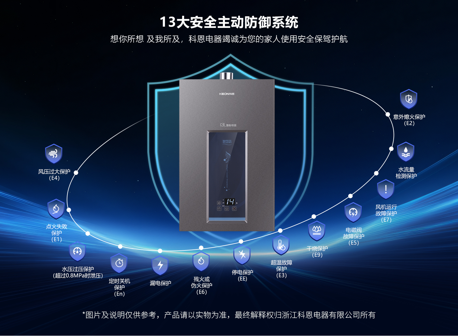 多重優勢,全天候安心守護。超靜音運行搭配智能恒溫技術,老人孩子洗澡再也不用反復調試,智能分段燃燒,極速控溫,從過熱保護裝置到報警功能,13重全天候安全保護,每一瞬都放心20分鐘定時關機提醒通風,智能生活從細節開始。
