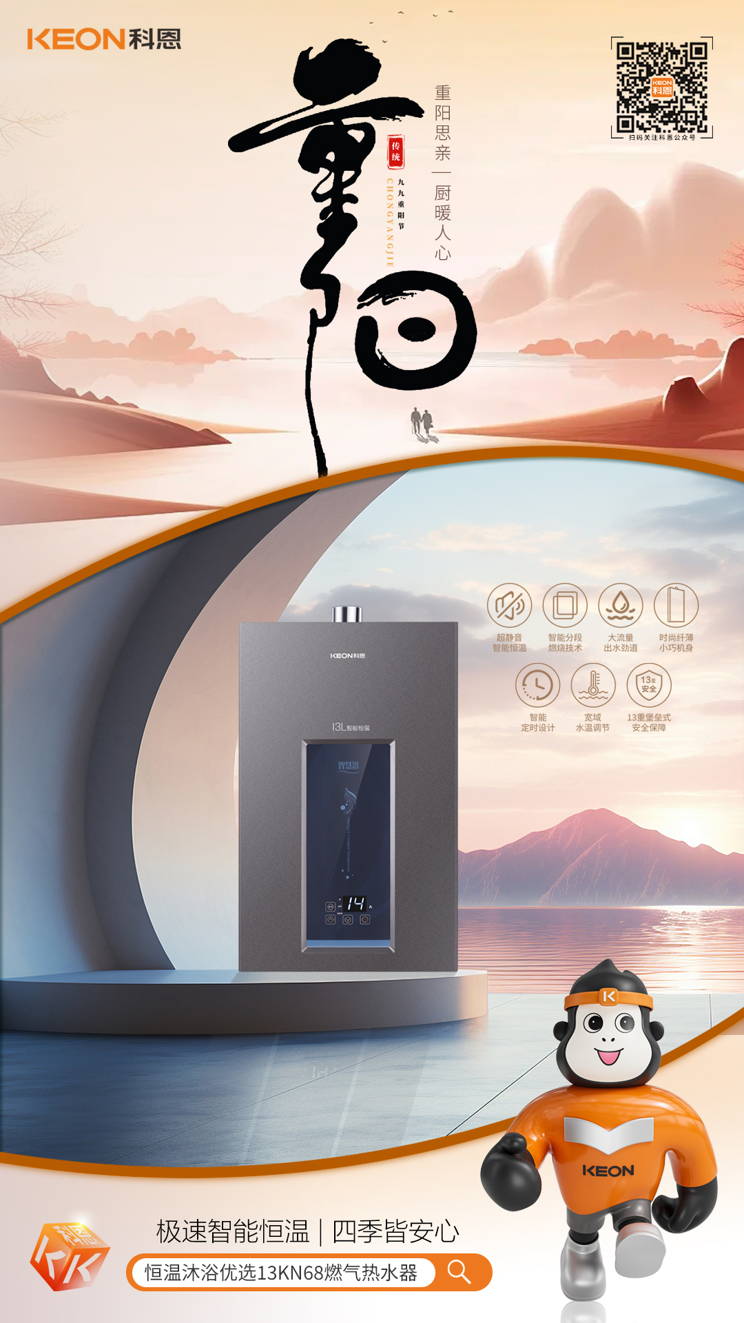 重陽又至,秋意漸濃登高祈福賞菊飲酒孝心綿長廚房煙火,承載三代溫情一套省心廚電讓團圓滋味更圓滿把對長輩的愛,藏進每一頓餐食里科恩廚電助你打造一個舒適、便捷、安全的廚房環境讓孝心在廚房中綻放