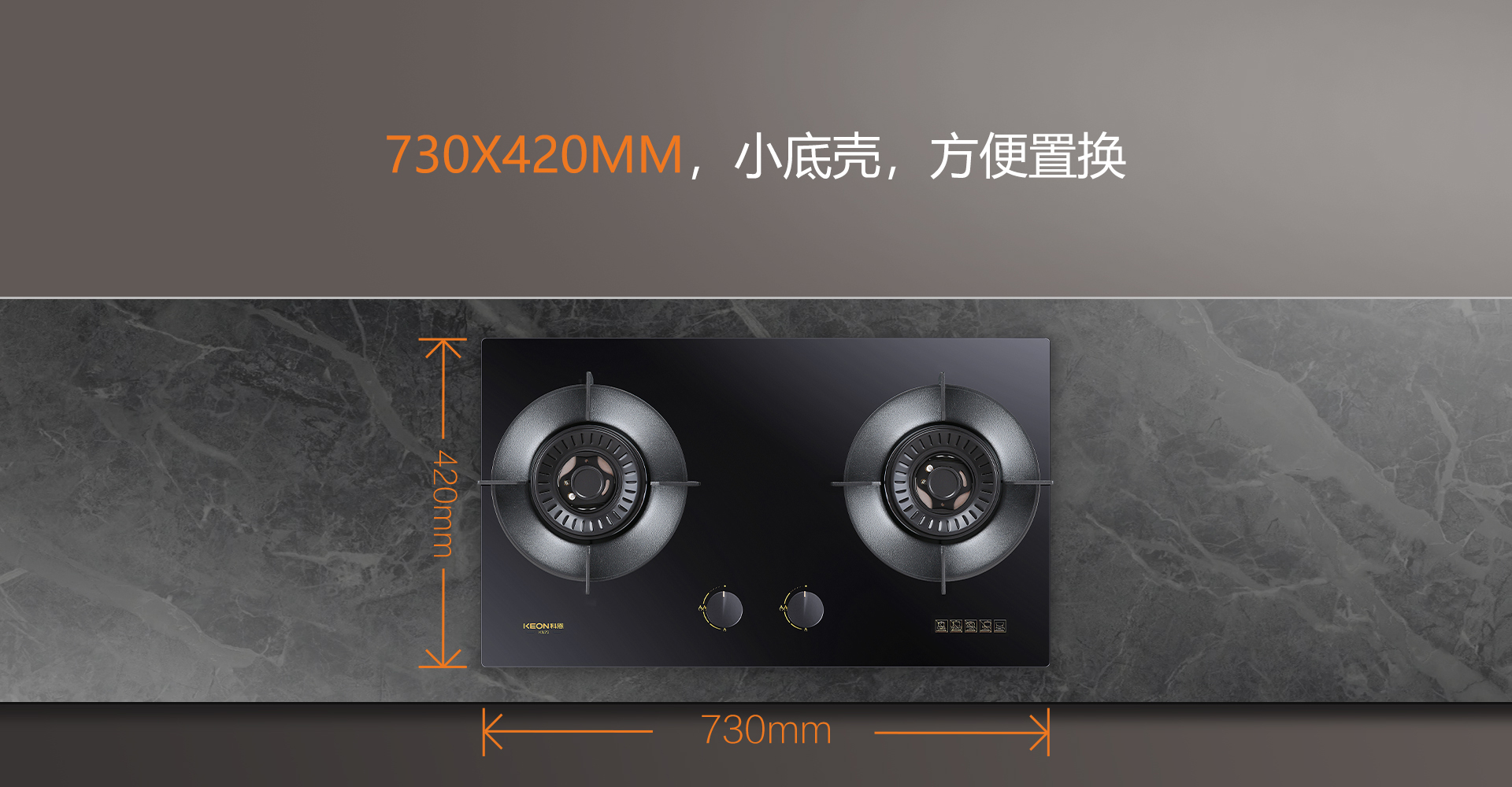 黑金面板,易潔耐造。黑晶玻璃觸感細(xì)膩光滑,抗腐抗氧無懼日常磨損,湯汁濺落一擦即凈,告別頑固污漬困擾,保持廚房潔凈時(shí)刻在線,煥新清潔便捷體驗(yàn)。小巧機(jī)身,置換無憂。730×420mm纖薄底殼,適配各類老廚房布局,無需改動(dòng)櫥柜結(jié)構(gòu),舊灶升級(jí)一步到位,煥新成本大幅降低,老廚房變身精致烹飪區(qū)。