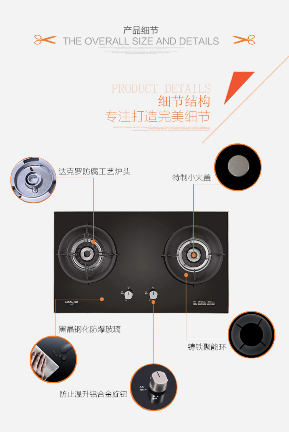 - 微動開關(guān)控火系統(tǒng),靈敏強(qiáng)勁。氣電分離,杜絕氣電隱患。