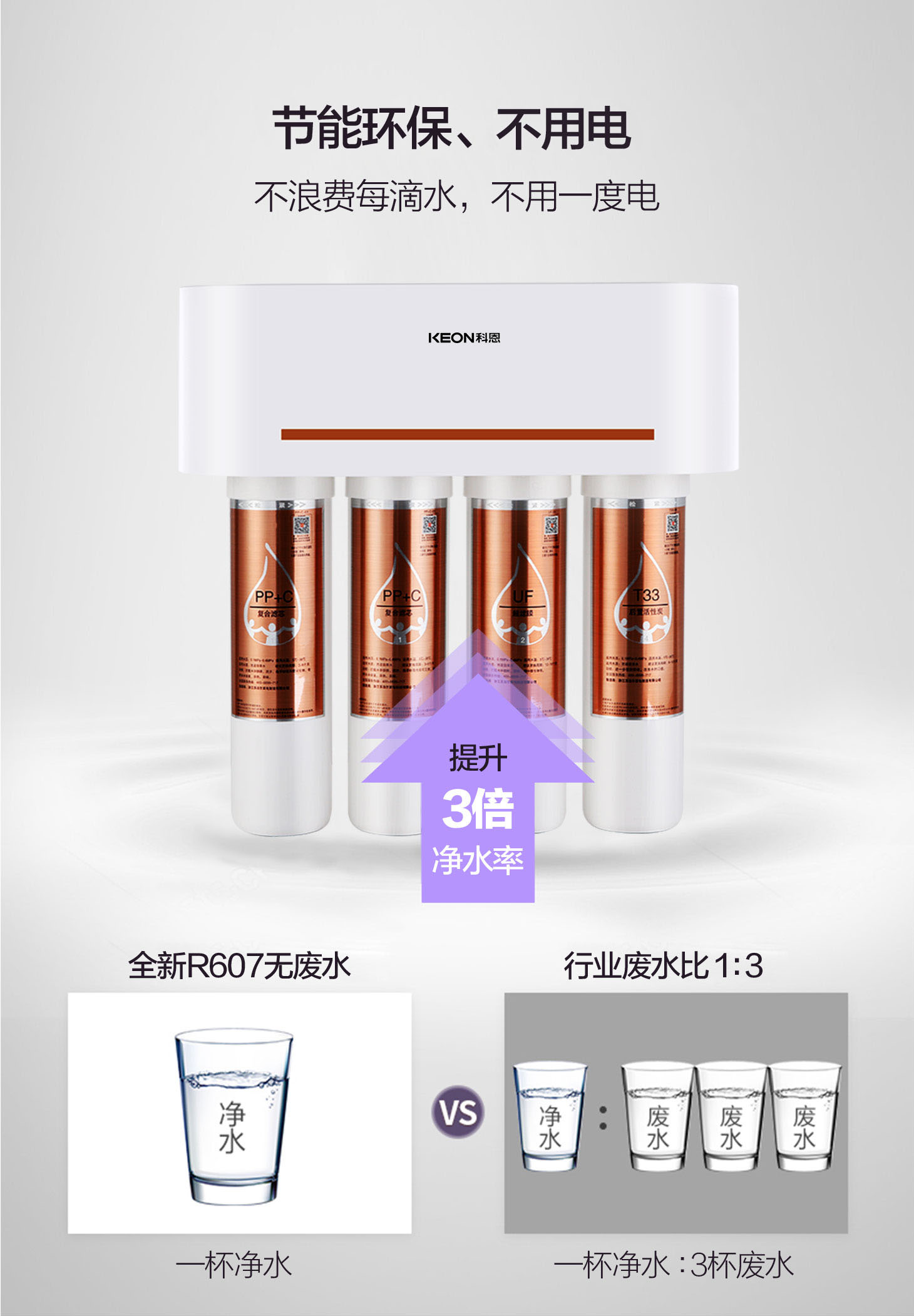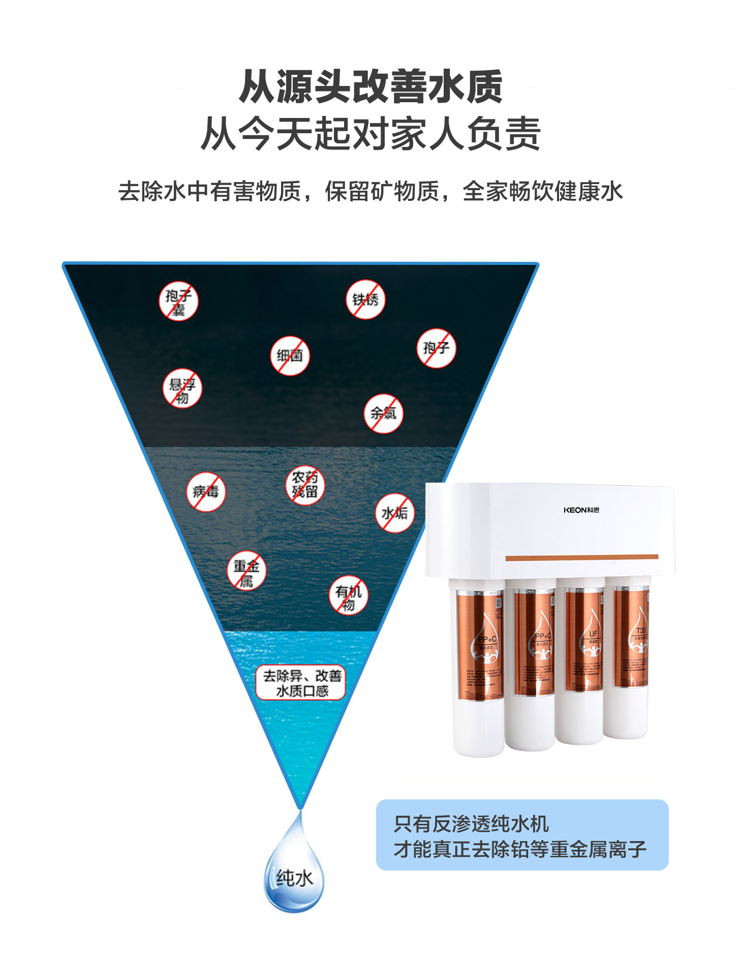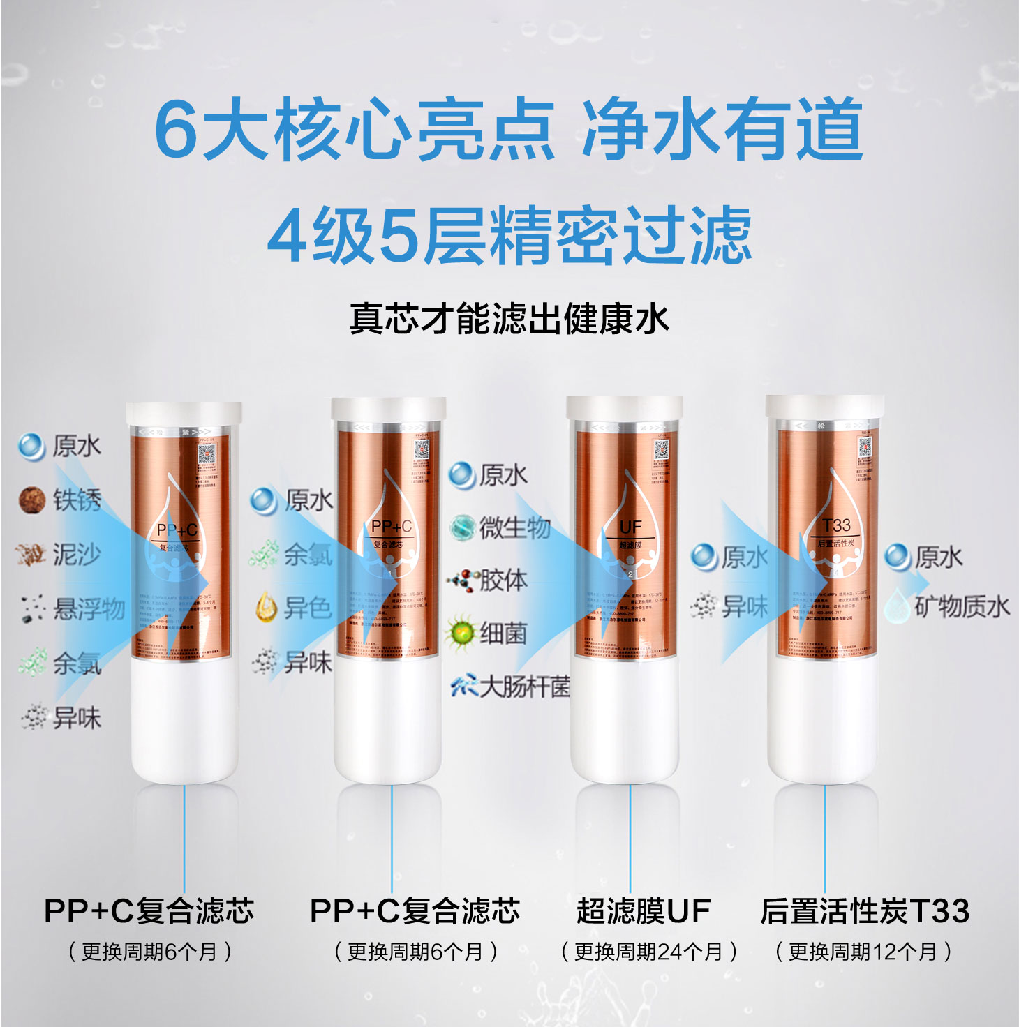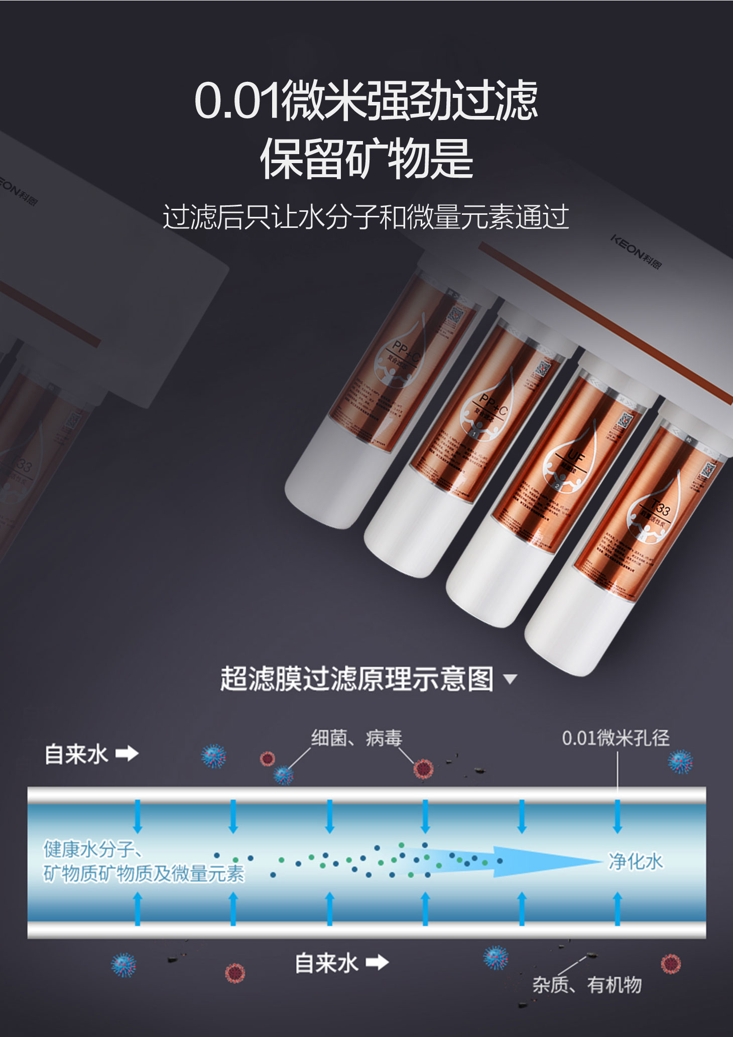 四重五級過濾,0.01微米超濾膜去除細菌和病毒