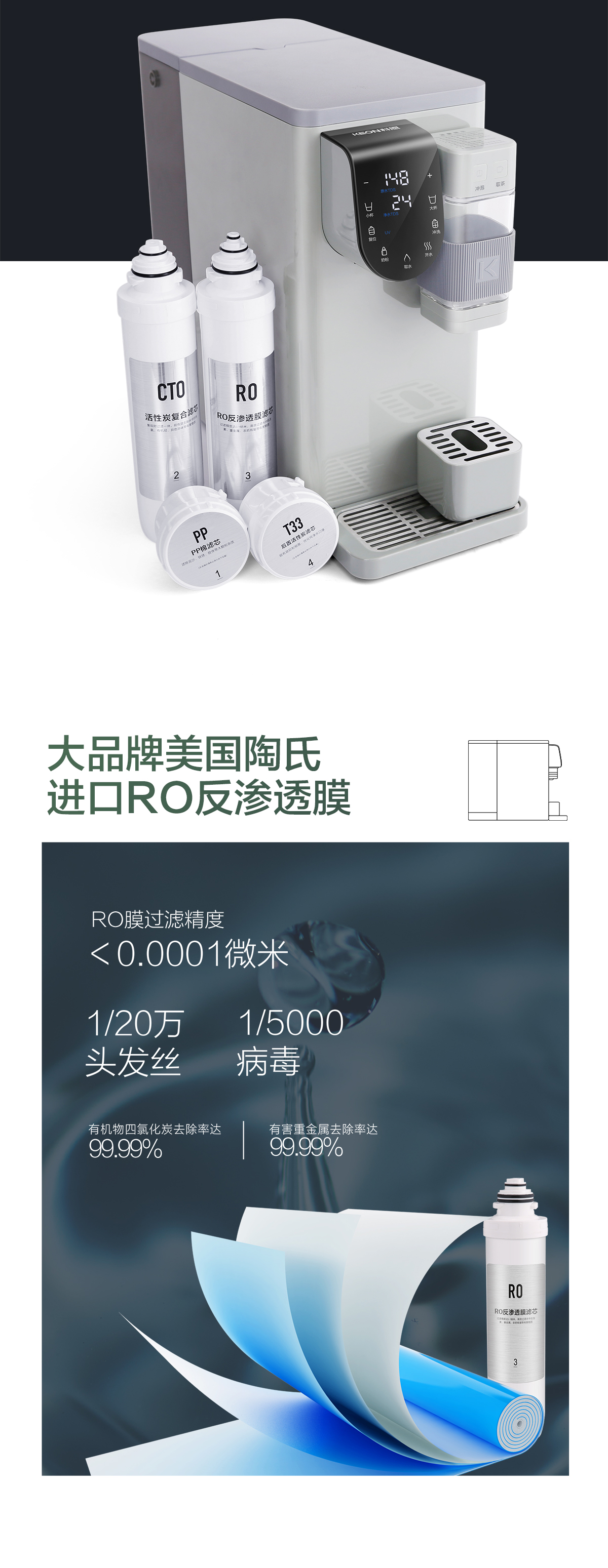 • 進(jìn)口美國(guó)陶氏RO膜&進(jìn)口后置活性炭