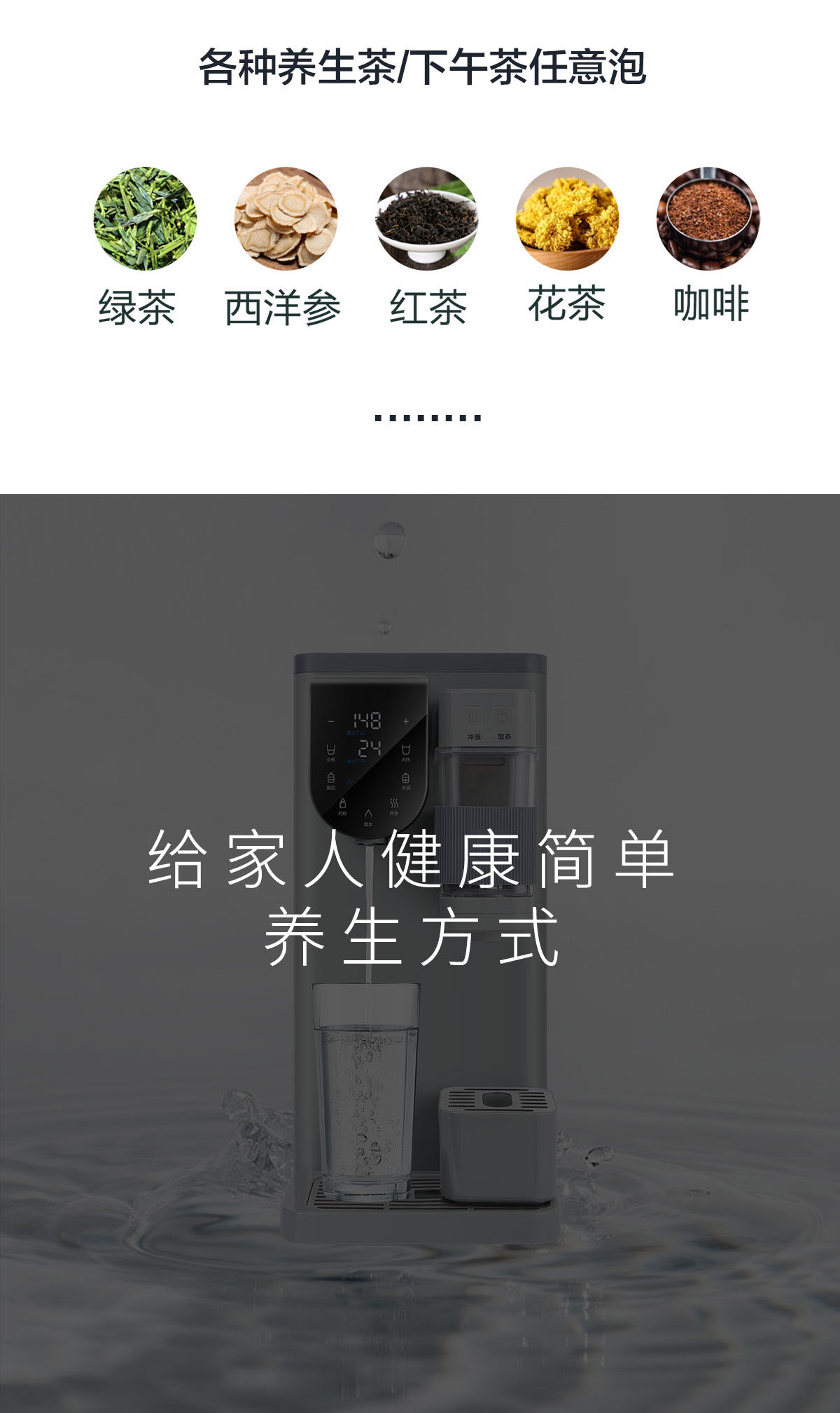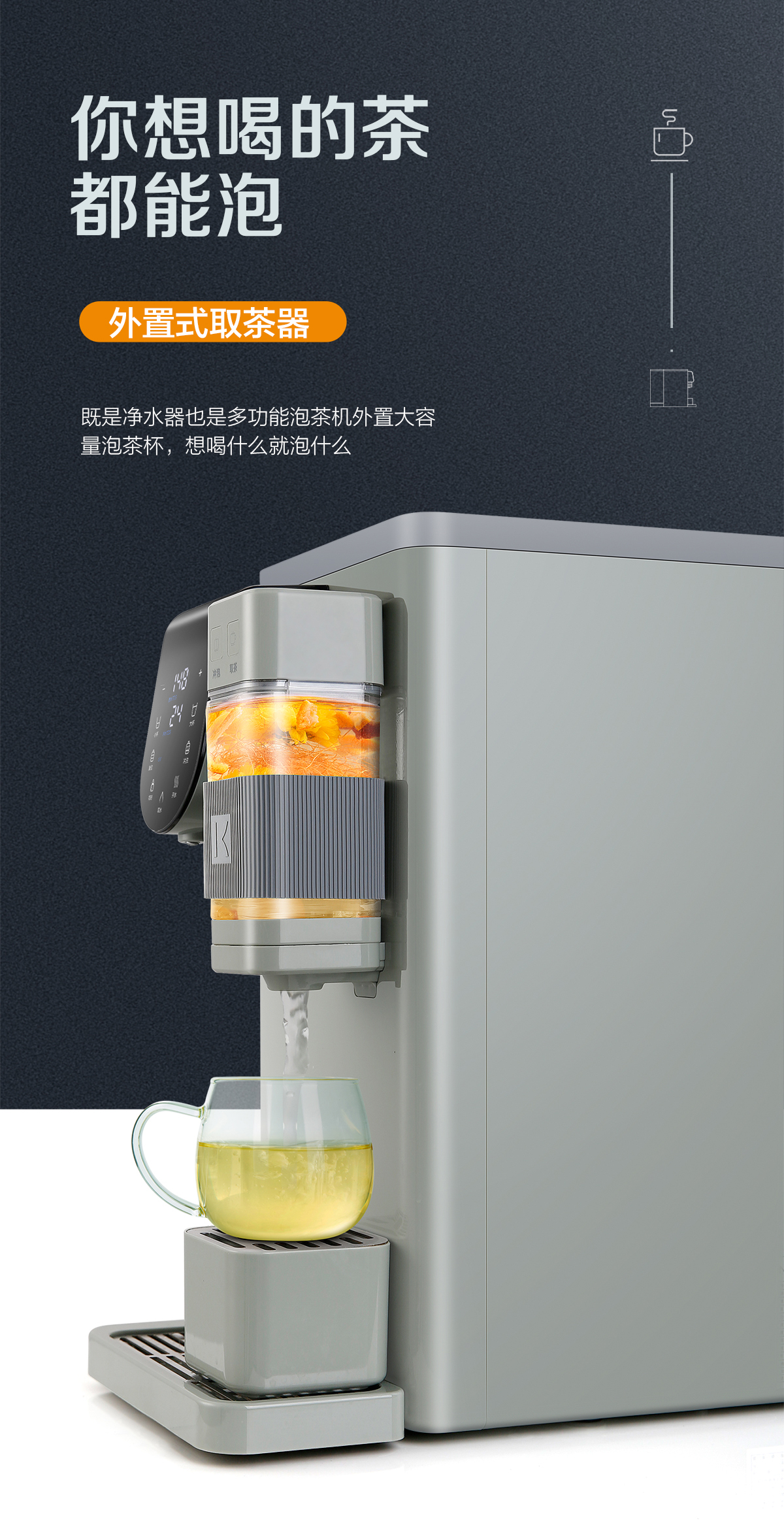 • 外置式?jīng)_泡取茶器,泡茶(綠茶、紅茶、花茶、養(yǎng)生茶、人參等)更加便捷方便