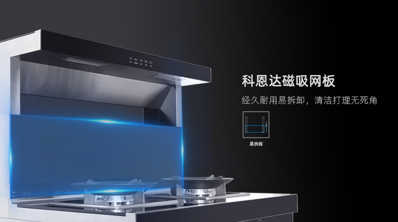150°俯沖式不銹鋼設(shè)計,導(dǎo)流更順暢,科恩達(dá)磁吸網(wǎng)板,經(jīng)久耐用易拆卸