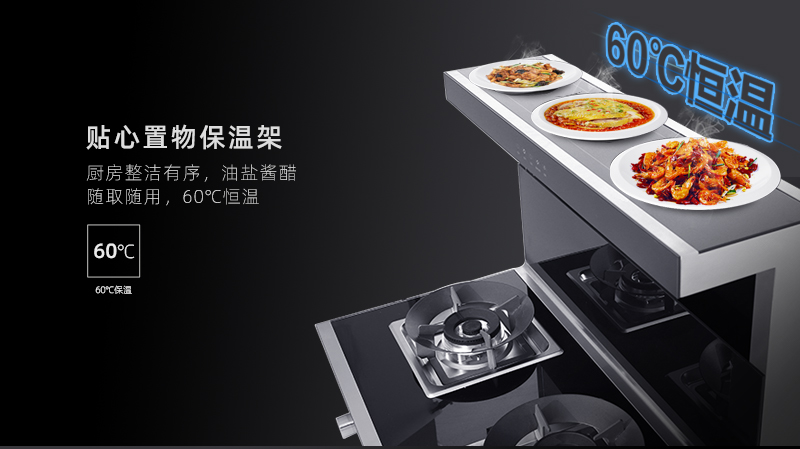 創(chuàng)新L型機(jī)頭設(shè)計,有效攏煙,貼心置物保溫架,60℃保溫