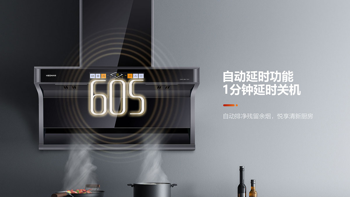 自動(dòng)延時(shí)功能,1分鐘延時(shí)關(guān)機(jī),自動(dòng)排凈殘留余煙,悅享清新廚房