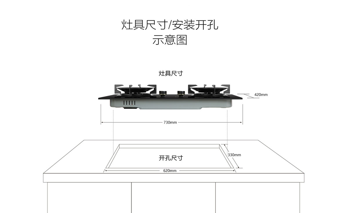外形尺寸:730x420x133mm開(kāi)孔尺寸:620x330xR15mm