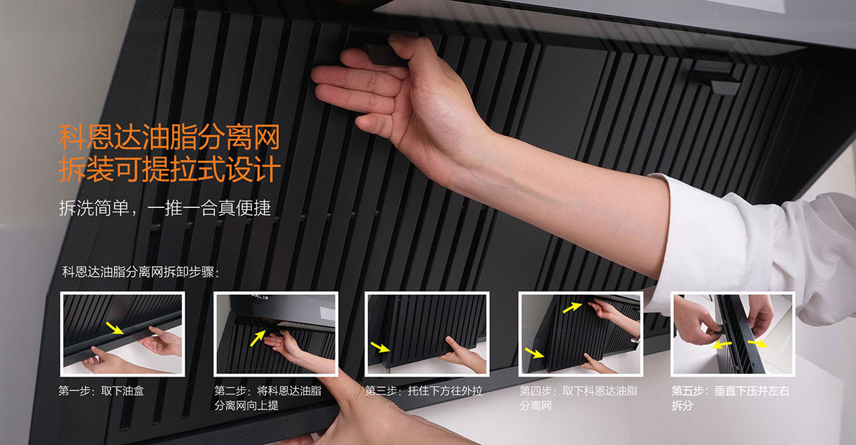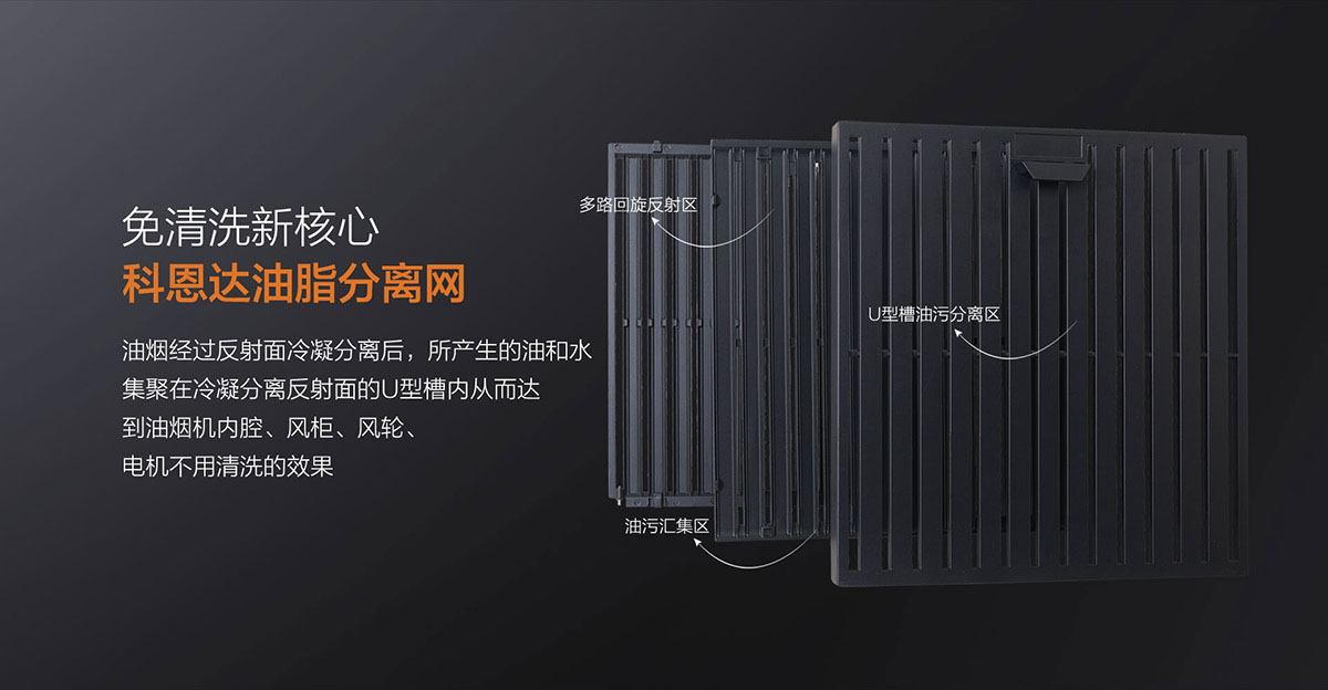 科恩達油脂分離網(wǎng)便捷拆裝設(shè)計,表面易潔工藝,拆洗簡單