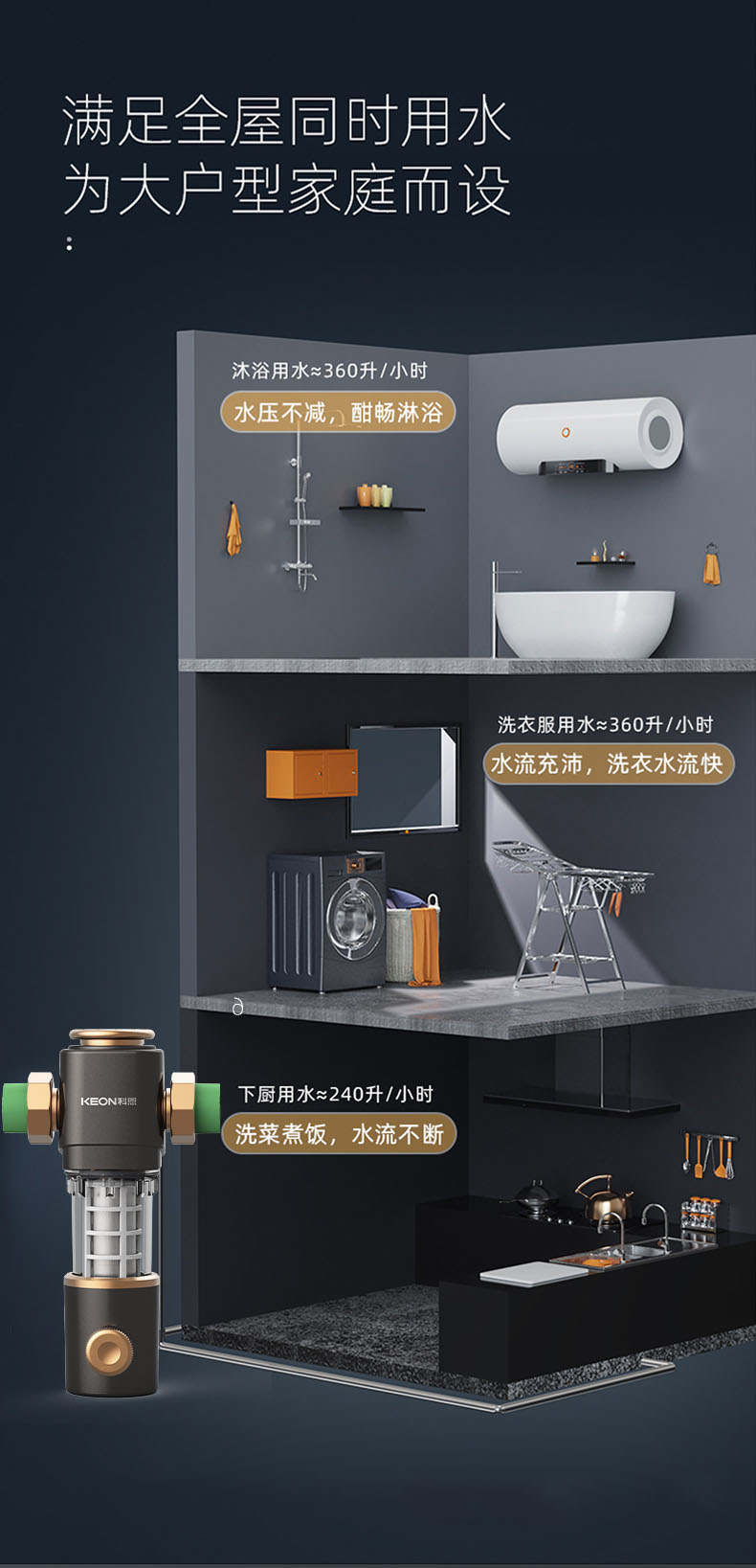 6噸/小時大流量,快速過濾,全屋用水無壓力