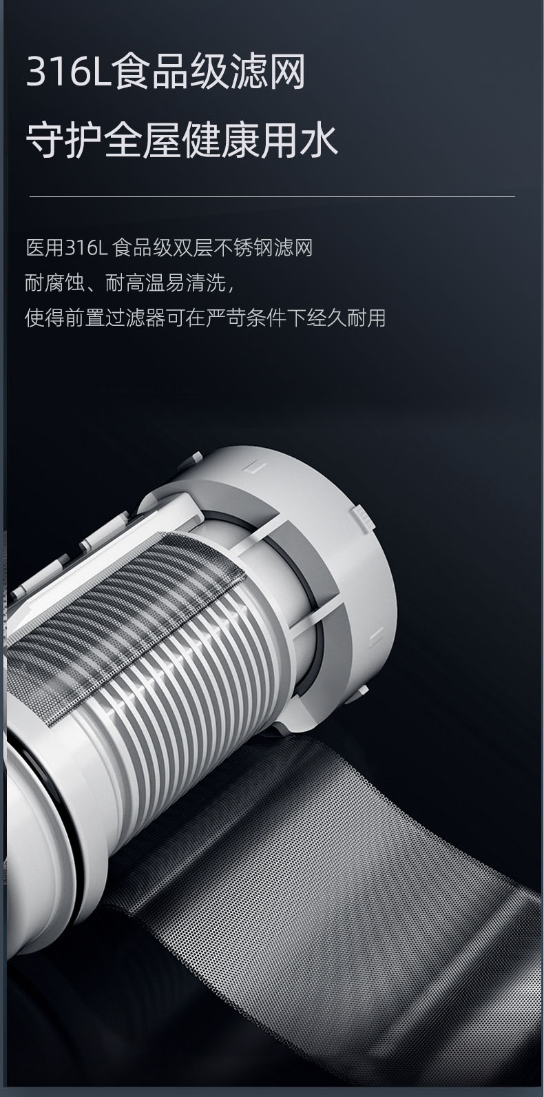 • 40μm過濾精度,精密不銹鋼濾網,提升水質
