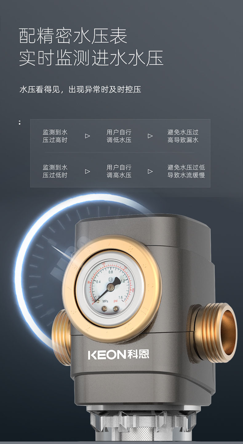 • 配精密水壓表,實時檢測進水水壓