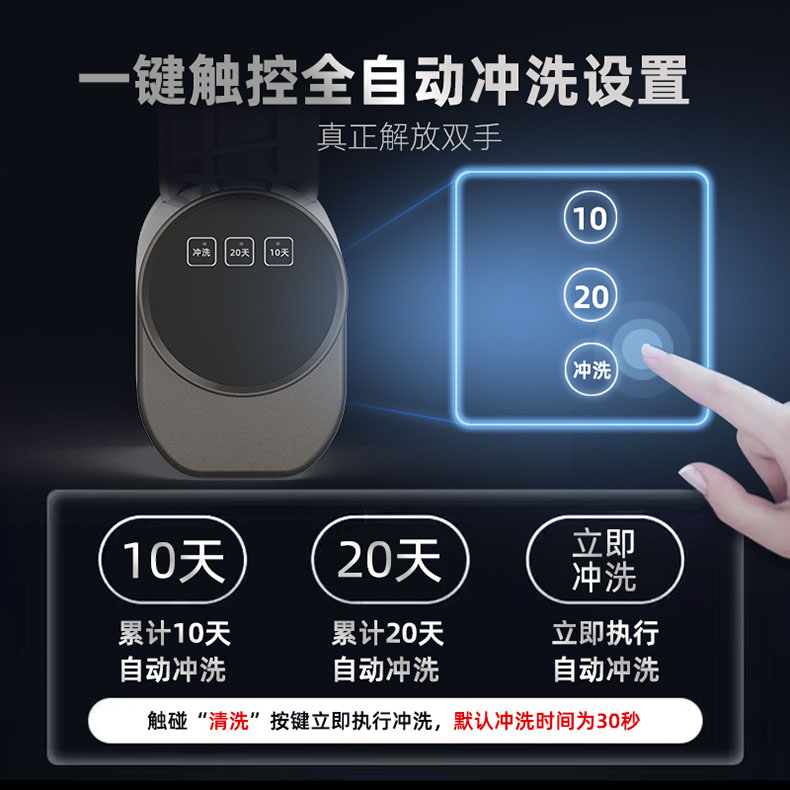 • 一鍵觸控全自動沖洗,保障內部潔凈如新