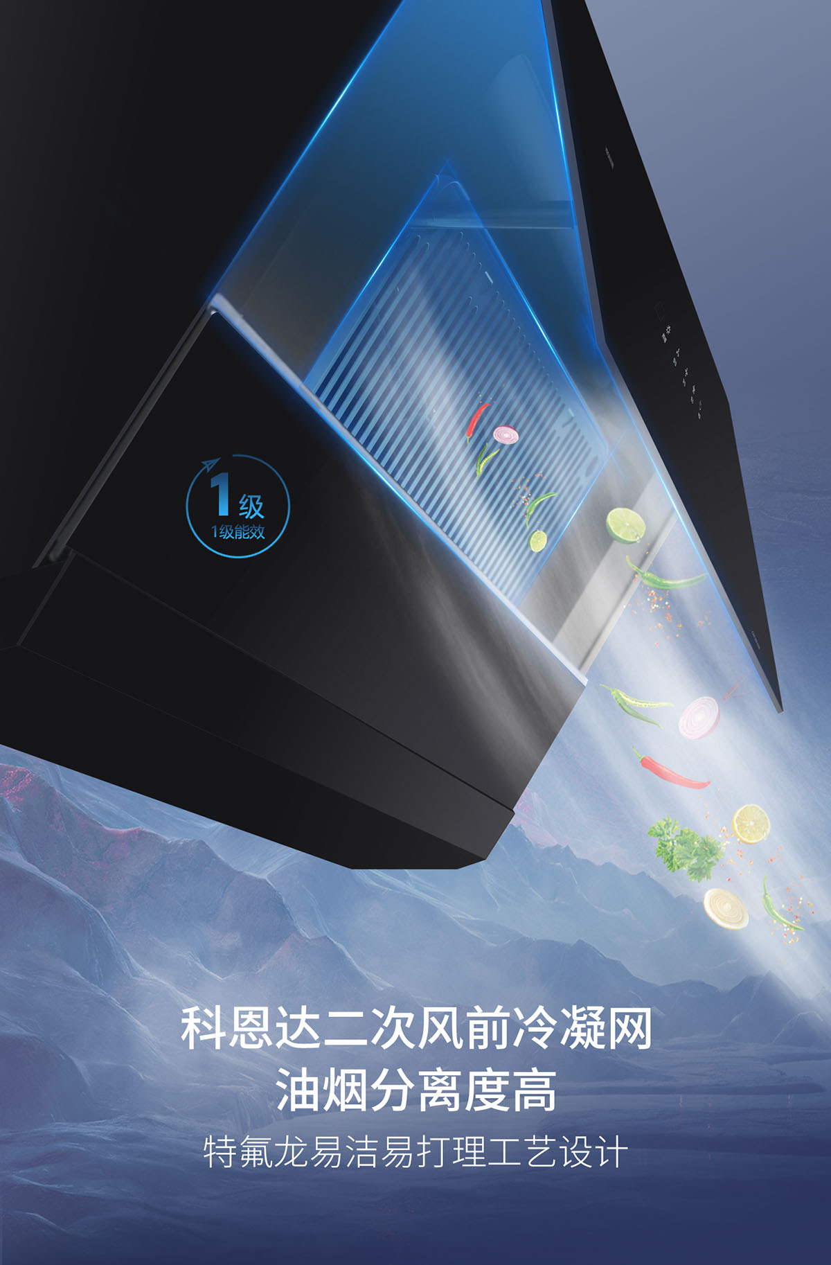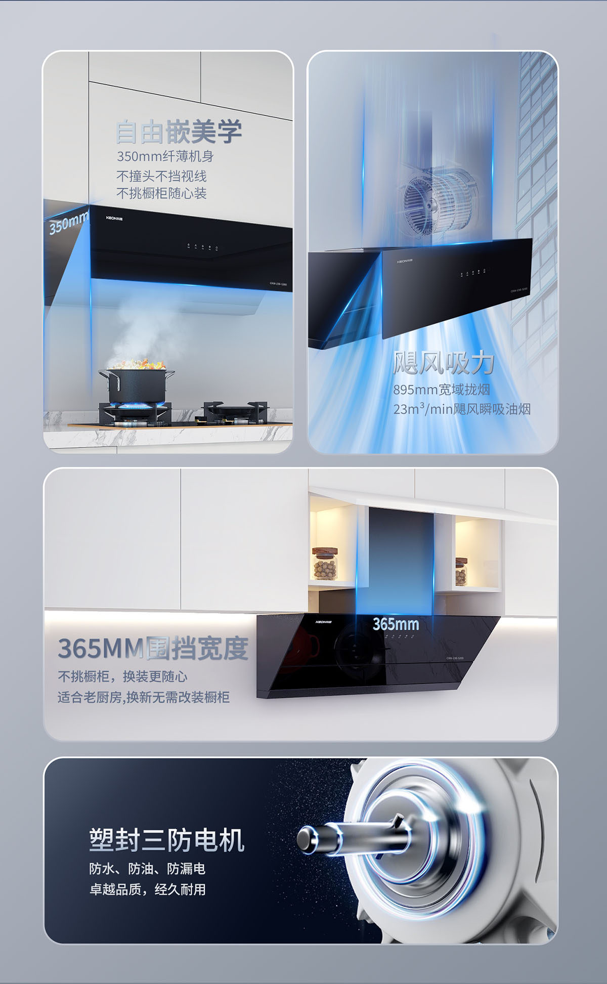 23m³/min颶風吸力,瞬吸油煙,打造無煙廚房