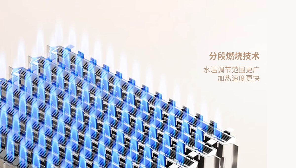 • 分段燃燒技術,⽔溫調節范圍更廣,加熱速度更快