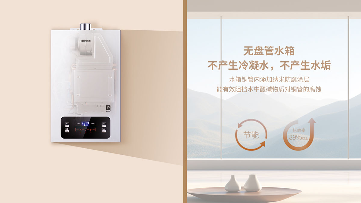 • 無氧銅水箱環保、節能、高效,熱效率高達89%以上