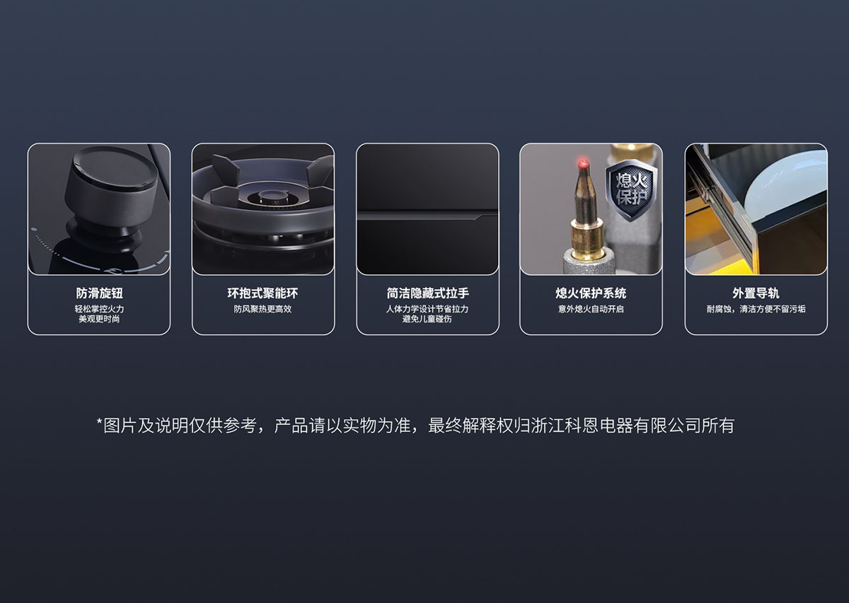 防滑旋鈕,輕松掌控火力,美觀更時尚