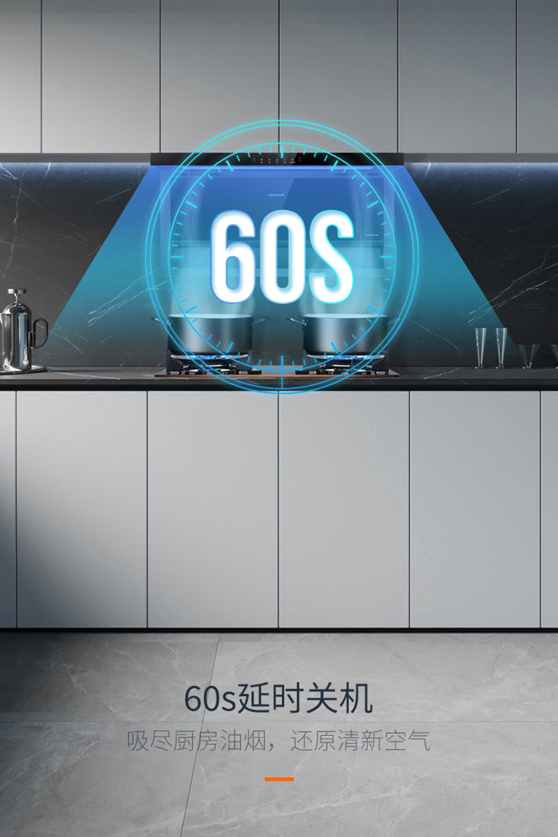60s延時關機吸盡剩余油煙,吸盡廚房雜味,還原清新空氣