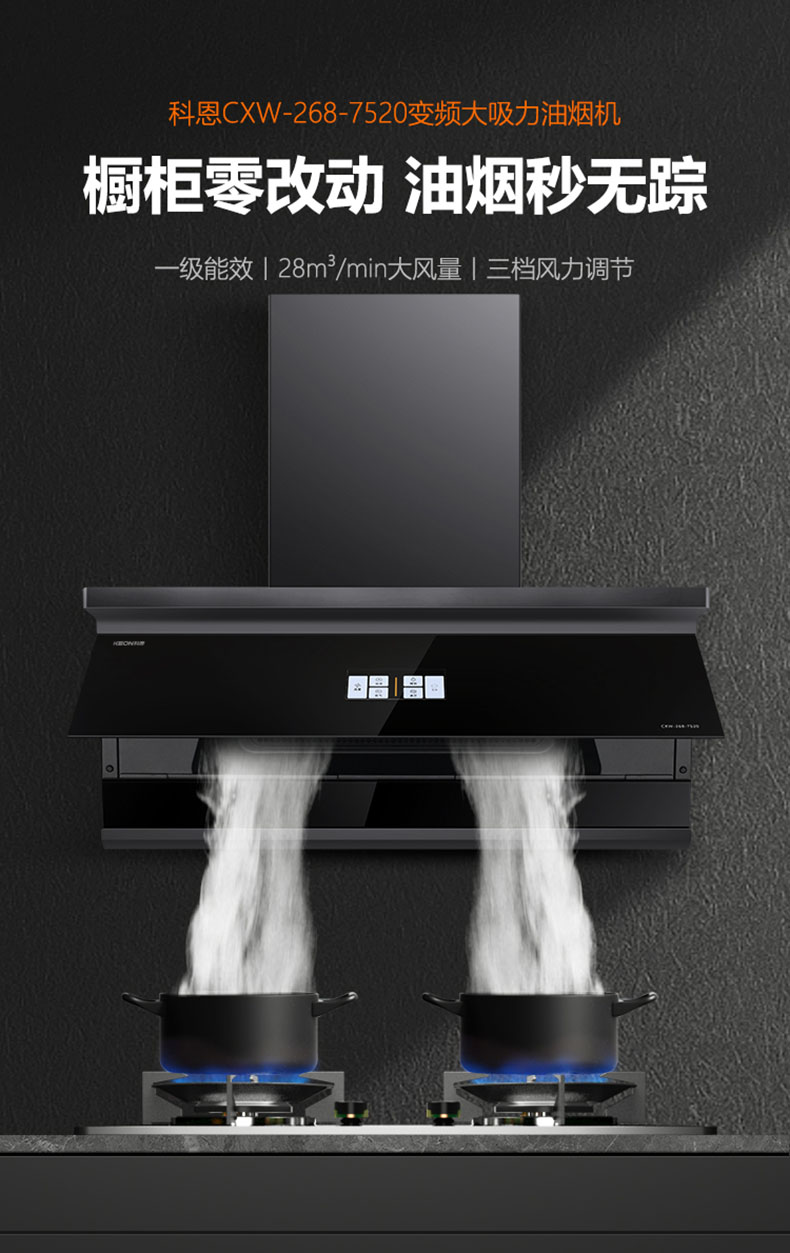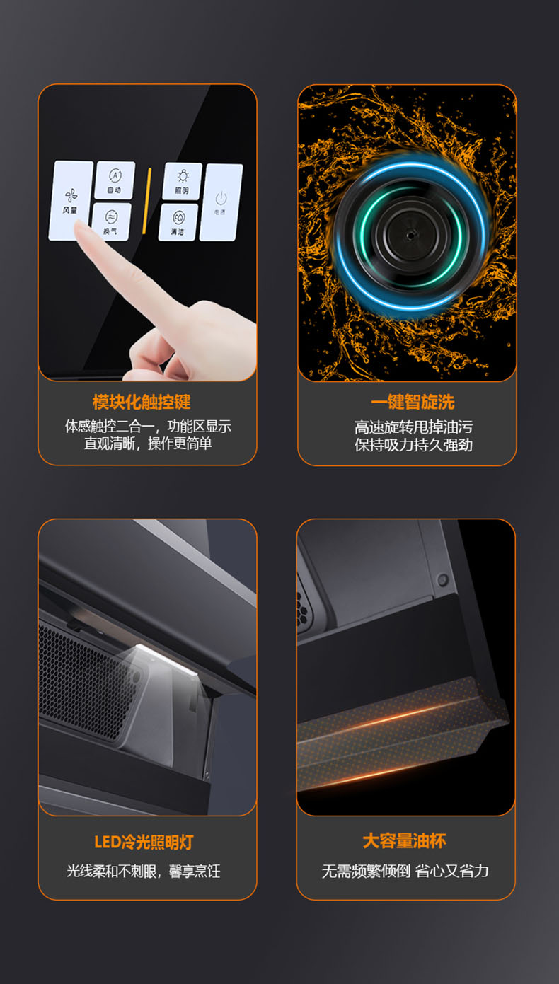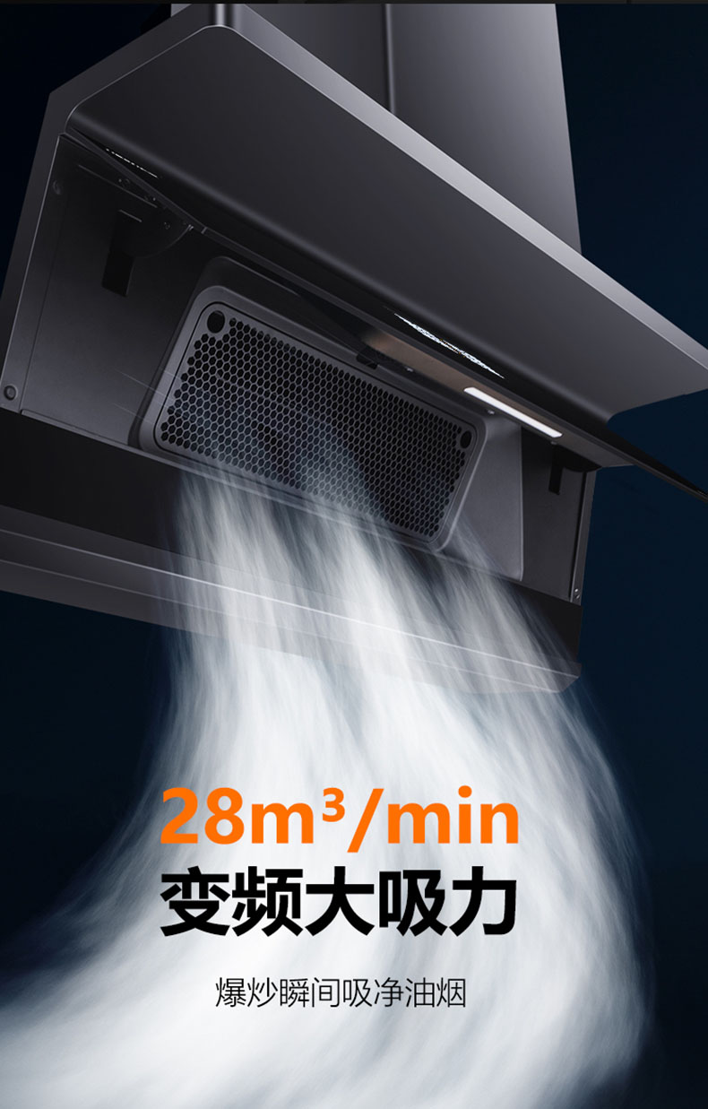 28m³/min颶風吸力,爆炒瞬間吸凈油煙